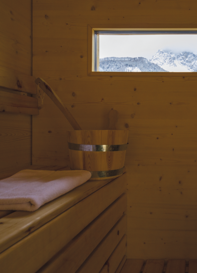 Wenn sich draußen die Sonne hinter dicken Wolken versteckt und erfrischende Regentropfen vom Himmel fallen, dann gibt es drinnen um so mehr zu entdecken. Nutzen Sie den hofeigenen kleinen Wellness-Bereich – jedes Chalet hat seine eigene Sauna und auch im Garten können Sie Sonnenstunden maximal ausnutzen – oder machen Sie einen Ausflug ins nahegelegene Erlebnisbad Acquafun in Innichen, toben Sie sich aus in der Kletter- oder Tennishalle der Dolomitenarena in Sexten oder erweitern Sie Ihr Wissen im DoloMythos – Museum in Innichen. Hier können Sie in die Geschichte, die Flora und Fauna und alle weiteren Besonderheiten des UNESCO-Welterbes der Dolomiten hautnah erleben.